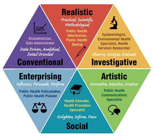 Six basic occupational characteristics can be distinguished. These are provided alongside with examples of career options.